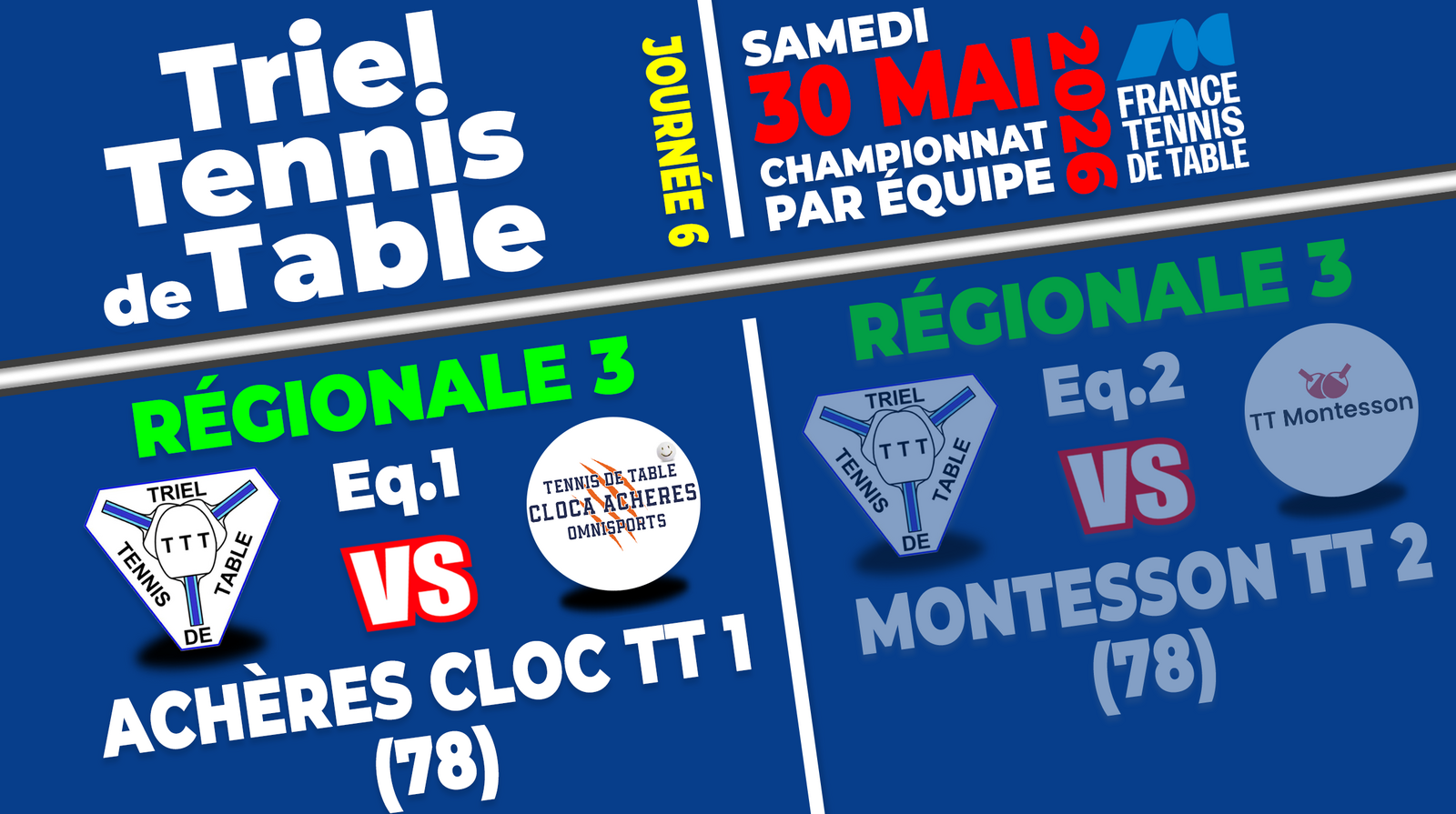 Championnat Régional, 6ème journée / Contre Achères CLOC TT 2
