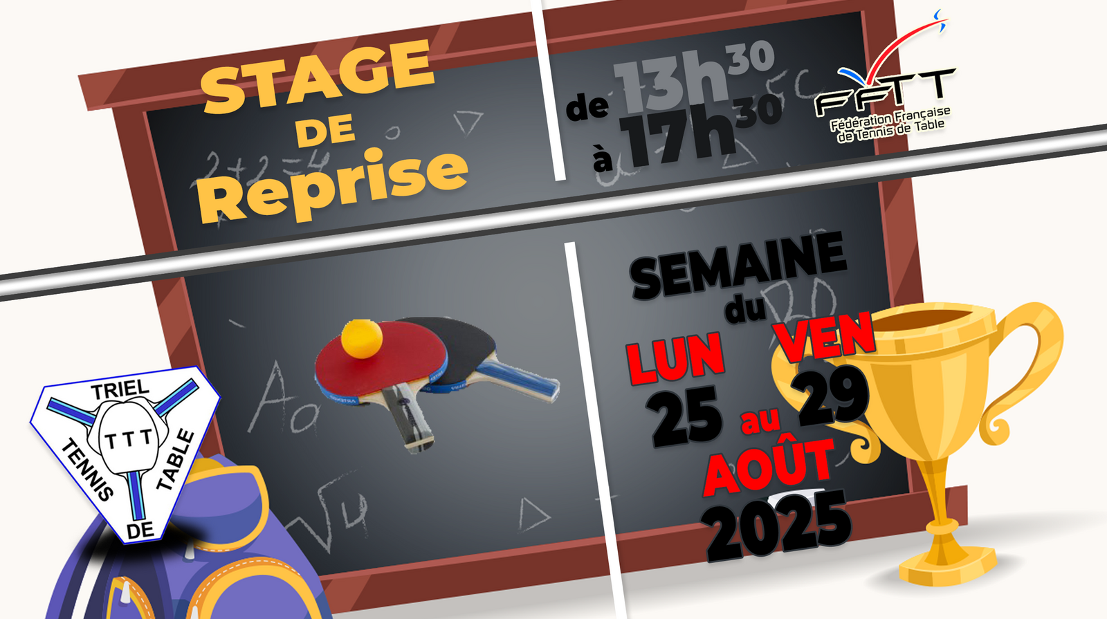 - 1 semaine inscrit au club de Triel TT : 60 €